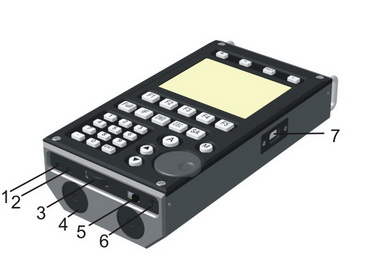 2. Socket for connection of transducers operating in ACOUSTIC channel and Magnetic Field Probe 3. Socket for connection additional Probes 4. Socket for connection of UHF convertor (RADIO channel) and wire line adapter (WIRE LINE channel) 5. Valcoder |